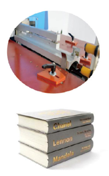 This version is specially designed for round back book Casing in. It solves theproblem of difficulty and time-consuming in round back book finishing pro-cess. It not only removes the shortage of unbalance gluing, but also improvesthe gluing speed (once two sides).It is quick and precise in locating the hardcases and aligning the book block with cases.